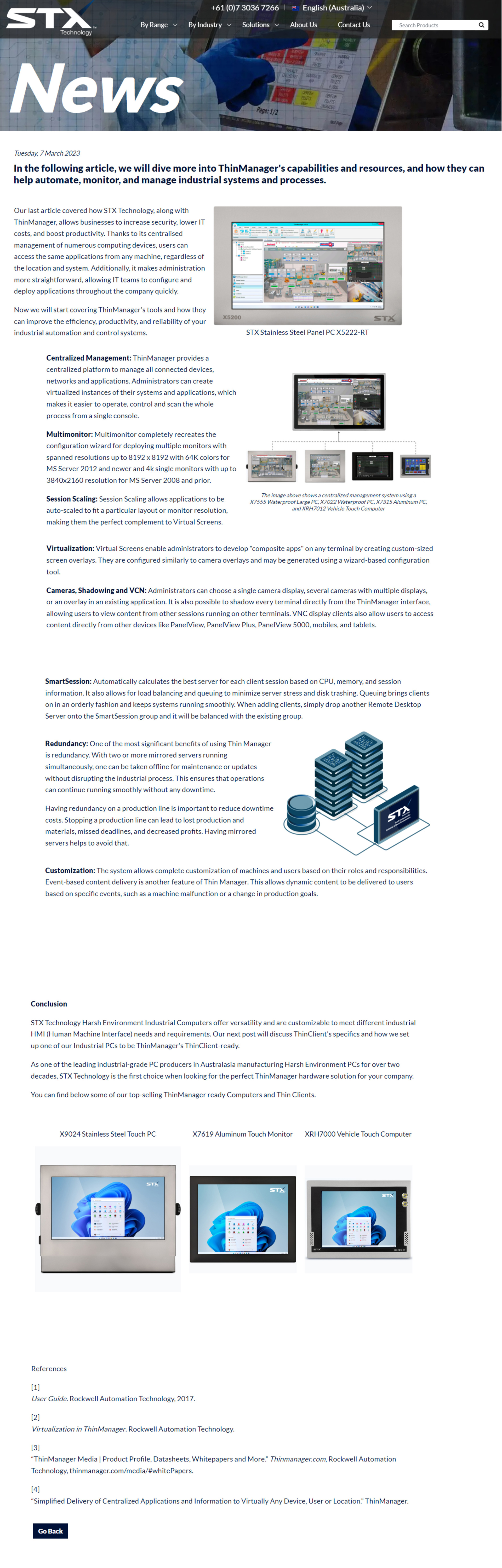 I created a series of blog posts and articles for STX that translate complex industrial technology into clear, engaging content. The focus was on showcasing STX’s cutting-edge solutions—like their P-CUBE Industrial IoT system, ThinManager automation software, and integrated HMI/I/O environments—in a way that’s easy to understand and valuable to readers.